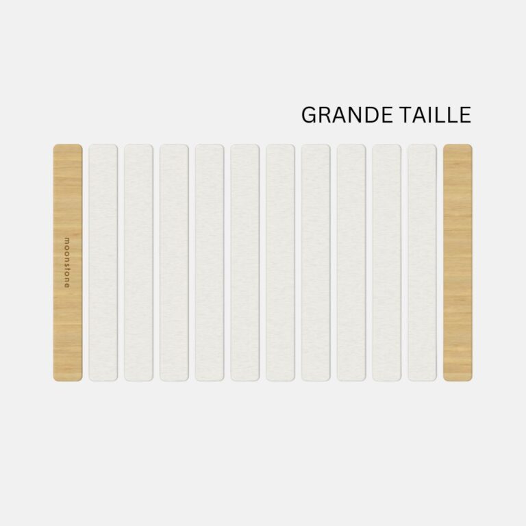 La diatomite utilisée par Moonstone™️ est purifiée, naturelle et sans danger pour la peau, même la plus sensible. Elle ne contient aucun produit chimique agressif et peut être utilisée sans crainte par toute la famille. C’est un matériau écologique et sain, parfaitement compatible avec une salle de bain familiale.