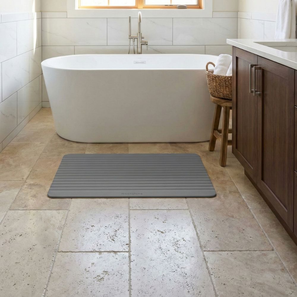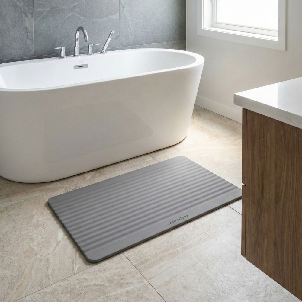 Grâce à sa surface absorbante, le tapis Moonstone™️ en diatomite offre une excellente adhérence, minimisant les risques de glissades et de chutes dans la salle de bain.