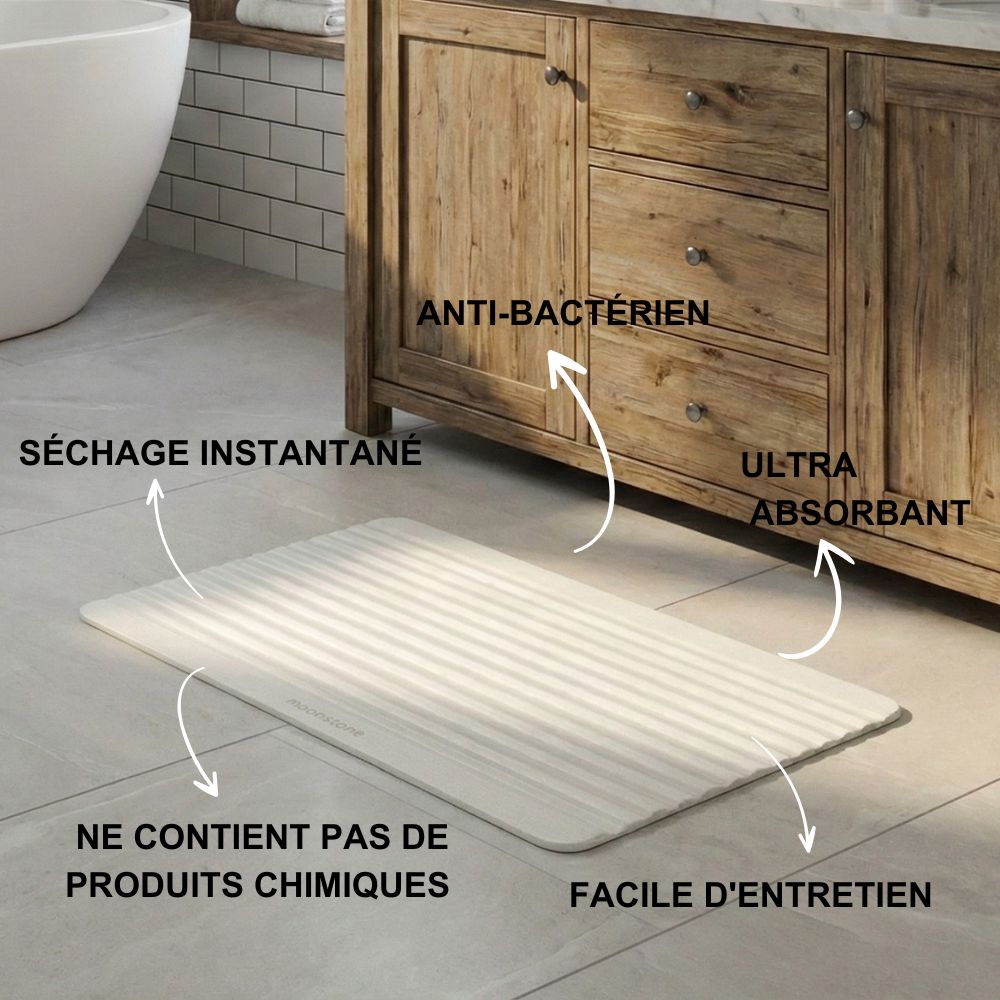 - tapis de bain haut de gamme : Sol sec instantané grâce à la diatomite