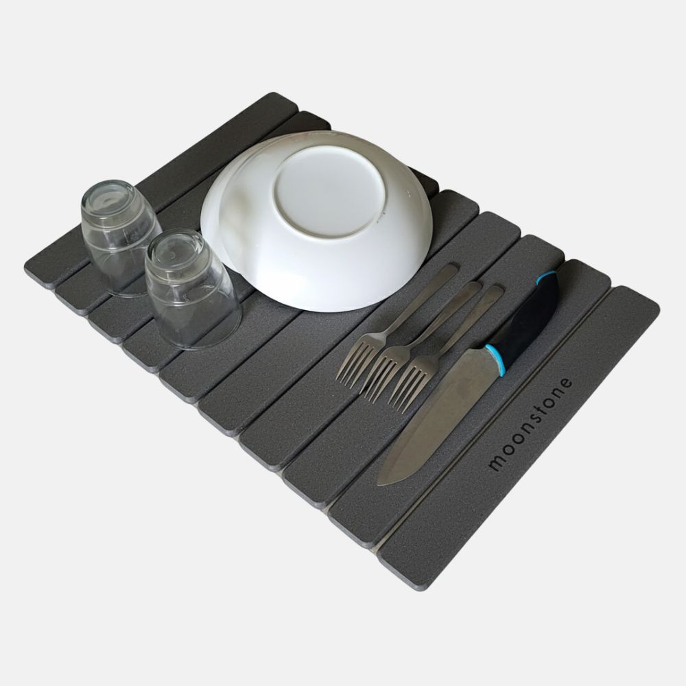 Après le nettoyage, laissez votre Moonstone sécher à l’air libre, sans intervention. Grâce aux propriétés asséchantes naturelles de la diatomite, votre accessoire retrouvera rapidement sa texture sèche et son pouvoir absorbant optimal.